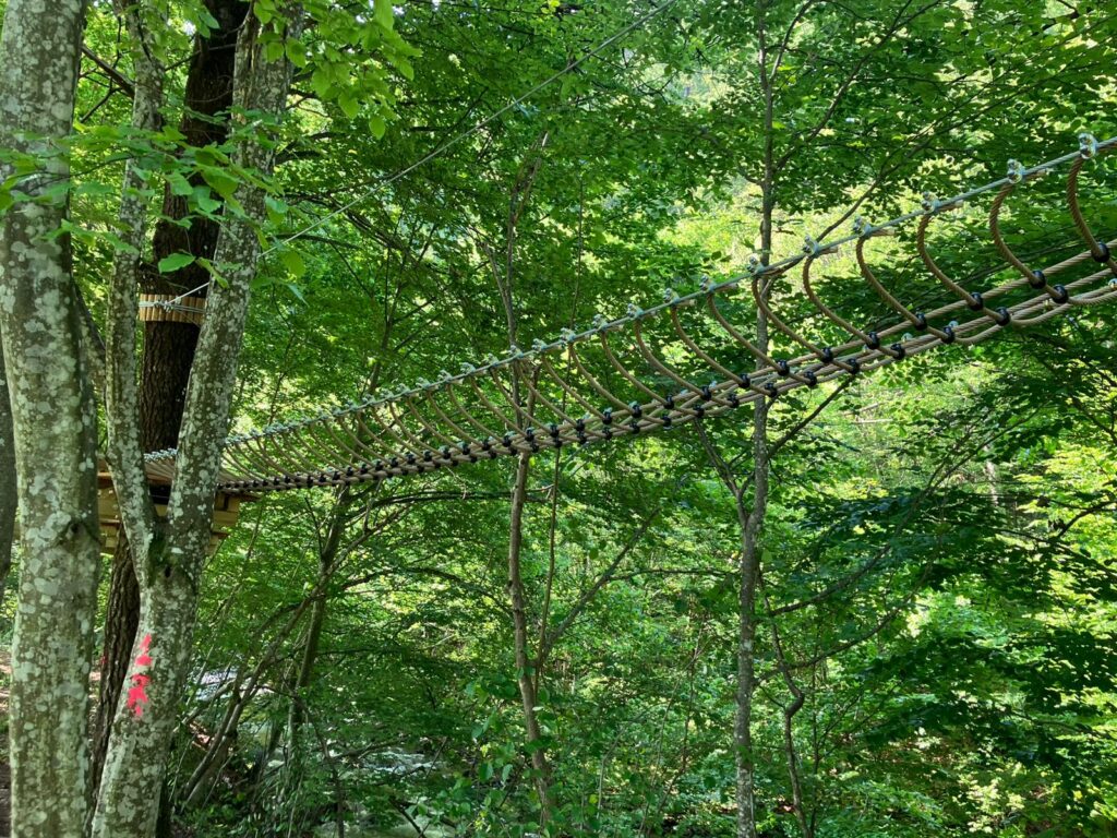 Pe lângă celelalte 5 trasee, aici vei găsi și un traseu de Super Tiroliană cu sistemul de asigurare “linia vieții continuă”.
